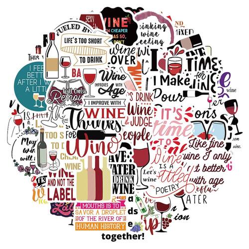 Pacote de adesivos Wine Quotes Anime, 50 unidades, 4-7 cm, à prova d`água