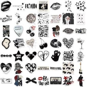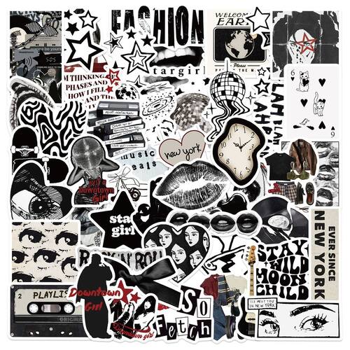 Material: papel e vinil Peso: 30-60 g Tamanho: 3-6 cm Quantidade: 50 unidades de adesivos estéticos Y2K — Inclui lábios, olhos, estrelas, textos de moda, fitas cassete e gráficos inspirados na música em designs retrô em preto e branco. Estilo moderno do Y2K — mistura perfeita de vintage dos anos 2000 e arte moderna minimalista para uma decoração elegante e ousada. Vinil impermeável de alta qualidade — durável, impermeável, resistente ao sol e facilmente removível sem deixar resíduos pegajosos. Decalques decorativos DIY — ideais para personalizar laptops, garrafas de água, guitarras, diários, álbuns de recortes, skates e malas. Ótimo para adolescentes e adultos — Perfeito para quem adora vibrações retrô, estética moderna e acessórios personalizados.