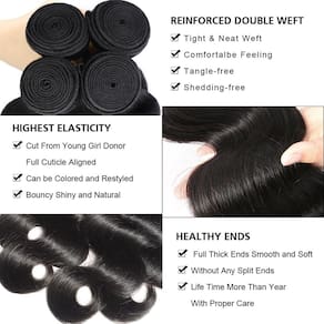 12A Feixes Ondulados de Cabelo Humano Feixes de Cabelo Humano 3 Bundels Cabelo Humano 100% Brasileiro Cabelo Humano Preto Natural Tecer Rápido Bundels Cabelo Humano Extensões de Cabelo Real - Material de cabelo humano ondulado do corpo: 100% cabelo humano virgem, feixes de cabelo humano brasileiro 12A, corte direto da cabeça da menina. Macio e natural, saudável e vibrante, sem cabelo sintético e animal - Qualidade dos feixes de cabelo humano: mechas de cabelo humano onduladas duplas à máquina, trama de cabelo saltitante e brilhante com alta elasticidade; apertado e limpo, cutícula unidirecional sem pontas divididas, sem queda, sem emaranhados, sem cheiros - Vantagem do cabelo humano dos feixes de tecelagem: o tamanho mais longo dos feixes humanos parecerá mais fino, fofo e brilhante, manterá você bonita e atraente. O pacote de cabelo humano pode ser alisado, enrolado e repenteado como seu próprio cabelo humano - Características do cabelo humano: 1B cor preta natural, cada pacote tem 95-100 g, fiel ao comprimento, geralmente 4 mechas de cabelo humano são cheias o suficiente para fazer uma cabeça inteira (30,5 a 45,7 cm precisam de 3 feixes, 50 a 71 cm precisam de 4 pacotes). 30 a 71 cm - Feixes ondulados de cabelo humano Ocasião: mechas de cabelo humano onduladas adequadas para aniversário, casamento, férias, viagem, formatura, uso diário ou enviar como surpresa. Os pacotes de ondas corporais podem torná-lo mais atraente e confiante