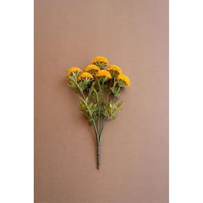 As zínias artificiais na mostarda dão um toque de cor a qualquer vaso ou vaso. Junte este spray sozinho ou misture e combine com outras cores. Faça um buquê de outono com laranja e amarelo ou da primavera até o verão com coordenadas vermelhas e roxas brilhantes.