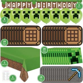 Transforme sua festa com decorações de aniversário de Minecraft: Crie uma celebração temática inesquecível de Minecraft para meninos ou meninas com este kit de decorações de aniversário do Minecraft. Inclui tudo o que você precisa para transformar seu espaço de festa em um mundo Minecraft, com itens essenciais como pratos e guardanapos Minecraft, balões, toalha de mesa, banner e lista de verificação. Se você estiver decorando para um menino de 5º, 6º ou 7º aniversário ou qualquer evento do Minecraft, essas decorações de aniversário do Minecraft para meninos certamente serão um sucesso. Conjunto completo de festa Minecraft: este conjunto de decorações de festa de aniversário do Minecraft inclui 16 pratos grandes de jantar de 22,8 cm, 16 pratos de sobremesa pequenos de 18 cm, 16 guardanapos Minecraft, 1 banner, 1 toalha de mesa Minecraft, 8 balões de látex e 1 lista de verificação. Perfeito para servir 16 convidados e garantir uma configuração perfeita de festa Minecraft Qualidade: os pratos e guardanapos Minecraft incluídos neste conjunto são feitos de materiais de alta qualidade. Estes pratos resistentes são ideais para refeições e sobremesas, proporcionando uma experiência durável e encantadora que complementa suas decorações de festa Minecraft. Crie memórias duradouras: seu filho e seus amigos ficarão surpresos quando o espaço da sua festa for transformado com essas vibrantes decorações de aniversário do Minecraft. Dos pratos e guardanapos do Minecraft aos balões e faixas temáticas, cada detalhe é projetado para criar memórias duradouras de uma celebração que eles nunca esquecerão Decoração de festa oficialmente licenciada pelo Minecraft: Todos os itens neste kit de decoração de festa Minecraft fazem parte da coleção Minecraft oficialmente licenciada da Unique. Itens adicionais de coordenação para melhorar seu evento de festa com tema de Minecraft também estão disponíveis. - Transforme sua festa com decorações de aniversário de Minecraft: Crie uma celebração inesquecível com tema de Minecraft para seu filho! Este kit de decoração de aniversário do Minecraft inclui tudo o que você precisa para transformar seu espaço de festa em um mundo Minecraft. Este pacote inclui itens essenciais - pratos e guardanapos Minecraft, balões, toalha de mesa, banner e lista de verificação. - Conjunto completo de festa Minecraft: este conjunto de decorações de festa de aniversário do Minecraft inclui 16 pratos grandes de jantar de 22,8 cm, 16 pratos de sobremesa pequenos de 18 cm, 16 guardanapos Minecraft, 1 banner, 1 toalha de mesa Minecraft, 8 balões de látex e 1 lista de verificação. Perfeito para servir 16 convidados e garantir uma configuração perfeita de festa de Minecraft. - Qualidade: os pratos e guardanapos Minecraft incluídos neste conjunto são feitos de materiais de alta qualidade. Estes pratos resistentes são ideais para refeições e sobremesas, proporcionando uma experiência durável e agradável que complementa suas decorações de festa Minecraft. - Crie memórias duradouras: seu filho e seus amigos ficarão surpresos quando seu espaço de festa for transformado com essas vibrantes decorações de aniversário do Minecraft. Dos pratos e guardanapos do Minecraft aos balões e faixas temáticas, cada detalhe é projetado para criar memórias duradouras de uma celebração que eles nunca esquecerão. - Decoração de festa Minecraft oficialmente licenciada – Todos os itens neste kit de decoração de festa Minecraft fazem parte da coleção Minecraft oficialmente licenciada pela Unique. Itens adicionais de coordenação para melhorar seu evento de festa com tema de Minecraft também estão disponíveis.
