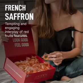 - Açafrão francês: uma interação tentadora e envolvente de frutas vermelhas com cereja morello, groselha azeda, morango selvagem, framboesa e maçã vermelha crocante. A sensualidade evolui com carícias de caramelo cremoso, âmbar, vetiver e cedro para as quais notas de intriga e mistério são reveladas no açafrão francês, musgo de carvalho, guaiacwood, caxemira e fava tonka.