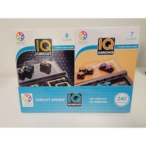 Aproveite - ou presenteie - dois dos jogos SmartGames IQ mais populares com este pacote especialmente preparado. O pacote de circuitos da série IQ inclui IQ Circuit e IQ Arrows. O SmartGames IQ Circuit apresenta 120 desafios com peças pretas e douradas brilhantes de vários lados. O IQ Circuit vem em um estojo independente, compacto e totalmente portátil. Você pode conectar os pontos? O SmartGames IQ Arrows oferece horas intermináveis de diversão na construção de habilidades cognitivas... em qualquer lugar! Você consegue encaixar as peças das flechas no tabuleiro para criar seu caminho? O IQ Arrows inclui 120 desafios - do fácil ao especializado - que testam suas habilidades de planejamento e percepção visual. Seguir o livreto de desafios incluído facilitará sua entrada no jogo e o ajudará a se tornar um especialista! O IQ Arrows é de bolso e o tabuleiro de jogo inclui uma tampa, o que o torna ótimo para viagens!