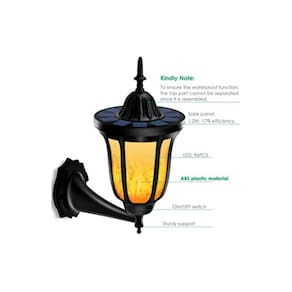 Economia de energia, carregamento automático e iluminação prolongada. O tempo de trabalho é de cerca de 6-8 horas. Ajuste automático do brilho. Ele tem um sensor sensível que pode detectar o brilho do seu ambiente e ajustar o brilho da lanterna de acordo? Quando a noite chega, a lanterna solar acende automaticamente, leve a luz para o seu jardim. Automaticamente sem plugues ou energia elétrica. Somente com energia coletada durante o dia. Ele pode ser ancorado em uma parede ou poste. Inclui parafusos e peças de parede.