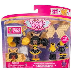Royale High Pacote de moda School Spirit de 7,6 cm: Cheerleading - Boneco Dark Series 1-1 com 15 acessórios - Wings Become Rings - Código do item virtual incluído - Idades 5+ - ROYALE HIGH: Como a maior propriedade de jogos baseada na moda, a Royale High convida você a explorar um mundo virtual com moda e estilo. - Boneca de 7,5 cm: esta fada faz parte da coleção inspirada em jogos da Série 1 e representa o elemento escuro; ótima para colecionar e personalizar. - Acessórios: o pacote de moda Cheerleader School Spirit apresenta 3 roupas, 3 pares de sapatos, 2 perucas, 3 acessórios de torcida e asas de fada que se tornam um anel usável. - CÓDIGO DO ITEM VIRTUAL: Resgate seu código de jogo para receber cabelo de torcida para sua boneca em todas as experiências. - Produto oficial: Produto Royale High oficialmente licenciado pela Jazwares.
