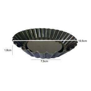 Pacote com 12 bandejas de tortinhas fixas individuais - 10,5 cm de diâmetro. - 7,5 cm de diâmetro inferior. -Altura: 1,8 CM\ N-Material: Metal\ N O molde é durável e sensível ao calor, o que pode fazer com que os alimentos aqueçam uniformemente. -Resistente ao desgaste, fácil de limpar, saudável e inofensivo. -Não aderente. - Design redondo de corpo curto, pode ser para fazer bolos, kuchen, tortas, pés e outros pratos de pastelaria individualmente.