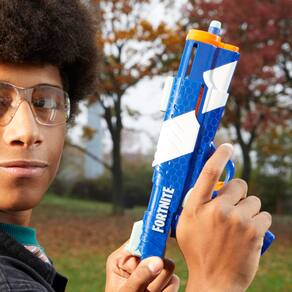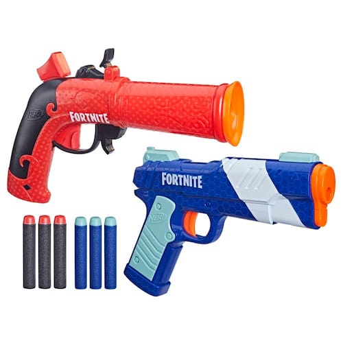 NERF Pacote duplo Fortnite, inclui 2 Fortnite Blasters e 6 Elite Darts - 2 lançadores NERF Fortnite em um pacote duplo: este pacote múltiplo contém 2 lançadores de dardos Nerf Fortnite especiais e 6 dardos Nerf Elite para proporcionar um duelo emocionante ao ar livre - Inspirado pelo equipamento Fortnite: este pacote múltiplo contém 2 blasters Nerf Fortnite inspirados no equipamento em Fortnite. Ambos os lançadores de dardos estão disponíveis neste conjunto pela primeira vez - Inclui 6 dardos NERF Elite: Este conjunto consiste em 2 lançadores Nerf Fortnite é ideal para jogos ao ar livre e vem com 6 dardos Nerf Elite para recarregá-los várias vezes - Lançador Flint-Knock: o lançador Flint-Knock oferece ação com uma alavanca de tensão, comporta 1 dardo e é fácil de usar. Um dardo é carregado no lançador pela frente, a alavanca de tensão é puxada para trás e o gatilho é pressionado - LP BLASTER: O LP Blaster tem um deslizamento tensionador e dispara 1 dardo. Em 3 passos simples, você está pronto para disparar: basta carregar um dardo pela frente, puxar o slide de tensão para trás e pressionar o gatilho