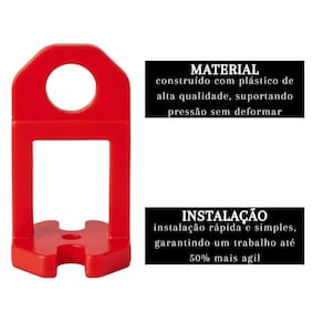 Nivelador Para Piso Vermelho 1.5mm Para Pisos Azulejos e Pedras Pacote com 100 Unidades O nivelador para piso Vermelho 1.5mm é a solução ideal para garantir um acabamento perfeito em pisos, azulejos e pedras. Ele elimina desníveis indesejados, proporcionando alinhamento uniforme e acabamento mesmo em grandes áreas. Fabricado com material resistente e de alta durabilidade, este nivelador se destaca por sua eficiência e precisão. Sua espessura de 1.5mm garante a regularidade do rejunte e mantém as peças firmes até a secagem completa da argamassa. Prático e fácil de usar, o nivelador reduz o tempo de instalação e evita retrabalhos. Com ele, até mesmo quem não é consegue obter um resultado de alta qualidade em pouco tempo. Diferenciais: Precisão garantida: assegura nivelamento uniforme entre as peças. Alta durabilidade: fabricado em material resistente, suporta pressão sem deformar. Facilidade no uso: aplicação simples e rápida, ideal para profissionais e iniciantes. Especificações TÉCNICAS: Espessura: 1.5mm Indicado para: pisos, azulejos e pedras Cor: Vermelho Material: Plástico resistente de alta qualidade Quantidade: pacote com 100 unidades Itens INCLUSOS: 100 unidades de niveladores para piso Vermelho 1.5mm