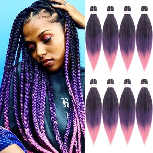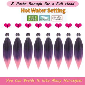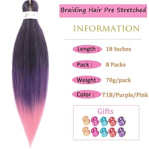 Cabelo trançado preto e roxo e rosa pré-esticado 45,72 cm, 8 pacotes, pré-esticado, textura yaki, extensão de cabelo sintético, sem coceira, configuração de água quente (45,7 cm, T1B/Roxo/Rosa02) - ?Material do cabelo?: O cabelo trançado pré-esticado é feito de fibra sintética resistente a chamas e retardante de chamas de alta qualidade. Aparência natural, textura yaki, muito leve, abundante e macia como cabelo humano. - ?Vantagens do cabelo?: Cabelo trançado atualizado pré-esticado, duradouro, super macio e amigo da pele, resistente ao suor, sem cheiro, sem alergia, sem coceira, não é fácil de dividir e difuso; lavável e reutilizável, fácil de trançar, perfeito para seu penteado protetor, confortável de usar por um longo tempo. - ?Fácil de instalar?: Cabelo trançado pré-esticado profissional, economiza muito mais tempo para trançar e instalar. Perfeito para personalizar penteados que você vai adorar. - ?Especificações do cabelo?: Você terá 8 pacotes de cabelo trançado de 45 cm pré-esticado e 10 anéis. Adequado para: uso diário, trabalho, escola, namoro, festa, noivado, casamento, cerimônia de formatura de viagem, meninas e crianças podem usar. Também é uma ótima opção de presente. - ?Configuração de água quente?: Você pode mudar o estilo de cabelo trançado pré-esticado muito facilmente mergulhando em água quente. Temperatura da água quente: 80 °C. Você pode fazer tranças de crochê ou cabelo de crochê torcido senegalês como quiser, pode ser utilizado como cabelo liso diretamente.