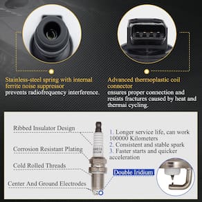 Número da peça do fabricante: UF333 + 7092 Número da peça de reposição da bobina de ignição: UF333, C1330,5C1299,178-8314, E352, E363, E994, 52-1702, IC574, UF322, UF494,90080-190223,90919-02243,90919-02244,90919-02244,90919-02244,90919-02244,90919-02244,90919-02244,90919-02244,90919-02244,90919-02244,90919-02244,90919-02244,90919-02244,90919-02244,90919-02244,90919-0224Número da peça: BKR6EGP, NGK 2272, BKR6EIX Compatível com os seguintes veículos: Para 2002-2009 Toyota Camry 2.4L L4 Para 2007-2011 Toyota Camry 2.4L L4 elétrico/gás VIN:B Para 2009-2010 Toyota Corolla 2.4L L4 Para 2009-2010 Toyota Highlander 2.4L L4 Para 2009-2010 Toyota Matrix 2.4L 4L L4 para Toyota RAV4 2001-2003 2,0L L4 Para 2004-2008 Toyota RAV4 2,4L L4 Para 2002-2006 Toyota Solara 2,4L L4 Para 2010-2012 Lexus HS250h 2,4L L4 Para 2005-2010 Scion tC 2,4L L4 Para 2010-2011 Scion xB 2,4L L4 Para 2009-2010 Pontiac Vibe 2.4L L4 - ? Compatível com: Para Toyota: 02-09 Camry 2,4L· 07-11 Camry 2,4L elétrico/gás09-10 Corolla 2,4L01-07 Highlander 2,4L09-10 Matrix 2,4L· 01-03 RAV4 2,0L04-08 RAV4 2,4L· 02-06 Solara 2,4L. Para 10-12 HS250h 2.4L. Para 05-10 Scion tC 2,4 L, 10-11 Scion xB 2,4 L. Para Pontiac Vibe 2.4L 09-10. Verifique a segunda imagem principal para confirmar se a bobina de ignição e a vela de ignição são compatíveis com seu carro. - ? Excelente função: uma bobina de ignição e uma vela de ignição defeituosas podem resultar em falha de ignição do motor, inatividade irregular do motor, diminuição da potência, baixa economia de combustível, etc. Cada componente corresponde ou melhora o design do OE para garantir uma instalação rápida e fácil com desempenho e confiabilidade superiores, para fornecer desempenho superior de partida a frio e um motor mais suave. - ? Alta qualidade: a vela de ignição é uma vela dupla de irídio, tem uma vida útil muito mais longa, pode funcionar 100001 quilômetros, é uma faísca consistente e estável. A bobina de ignição feita de materiais de qualidade premium, a mola de aço inoxidável com supressor interno de ruído de ferrite evita a interferência de radiofrequência, o conector de bobina termoplástica avançado garante a conexão adequada e resiste a fraturas causadas pelo calor e pelo ciclo térmico, para melhor transferir a alta tensão criada pela vela de ignição do motor. - ? OE# UF333 e 7092. O pacote inclui: pacotes de bobina de ignição x4, vela de ignição dupla Iridium x4. Manual de instruções não incluído, fácil de instalar. - ? Serviço pós-venda: oferecemos 24 horas de atendimento ao cliente e 1 ano de serviço de produto. Se você encontrar a instalação do produto, a qualidade do produto e outros problemas, não hesite em nos contatar.