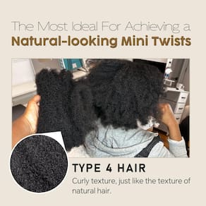 - 1. Textura natural: o cabelo humano afro-crespo tem uma textura apertada e enrolada que imita muitas texturas naturais de cabelo. Isso o torna ideal para obter um estilo de mini torção e torção de miscro de aparência natural. O estilo protetor pode efetivamente evitar quebras e frizz para proteger nossos cabelos naturais.