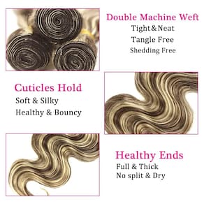 DiexrLamx Hair Bundles~ Especificações do cabelo: 1. Material: 100% cabelo humano brasileiro não processado 2. Textura: Pacotes ondulados corporais 3. Tipo de cabelo humano: Cabelo humano Remy brasileiro 4. Trama do cabelo: Trama usinada dupla, sem emaranhamento, sem queda 5. Cor do cabelo: loiro e marrom, cor piano P4/613. 6. Comprimento do cabelo: Feixes de cabelo de 20 a 76 cm 7. Peso do cabelo: 3 feixes, 100 g/pacote, 300 g no total no pacote FQA: P1: Quantos mechas eu preciso para uma cabeça inteira? A1: Normalmente 3 mechas são suficientes para uma cabeça inteira. P2: As mechas de cabelo liso podem ser enroladas ou remodeladas? A2: pode ser alisado e recortado como desejar, recomendamos 150 graus Celsius, caso contrário, danificará o cabelo. P3: Por que a trama do cabelo cai? R3: Para cabelos novos, alguns fios de queda inicial são normais como o nosso próprio cabelo. O cabelo tem trama dupla à máquina para evitar quedas. DiexrLamx Hair Bundles 1) Fabricante profissional, desempenho de custo ultra-alto. 2) Nós nos concentramos em fornecer mechas de cabelo de alta qualidade e fornecer o melhor serviço para garantir que você tenha uma experiência de compra satisfatória e sem preocupações. - ?Material dos feixes P4/613?: Feixes de cabelo virgem brasileiro 8A, macio, macio e volumoso, mechas de cabelo humano, grosso e completo e durável, sem emaranhados ou galpões. - ?Vantagem dos pacotes loiros ondulados?: Trama de máquina dupla, firme e limpa, sem queda, sem emaranhados, sem cheiros, fácil de pentear e modelar. - ?Cor dos pacotes de destaque?: Pacotes marrom e loiro, cor de piano P4/613, brilhante e bonito. - ?Fiel ao comprimento e peso?: 95-105 g/pacote, 3 mechas/pedido, 20,3 a 76 cm de cabelo humano disponível, fiel ao comprimento, várias opções, não importa o cabelo curto ou longo que você goste, você pode obtê-lo aqui e fazer um lindo penteado. - ?Lindas ocasiões de cabelo?Dedicamo-nos a produzir cabelo humano com a alta qualidade e excelente experiência. O cabelo Grace Length é aplicado em festas, aniversários, viagens, celebrações, casamentos, graduações e vida diária, mantendo você bonita e charmosa.