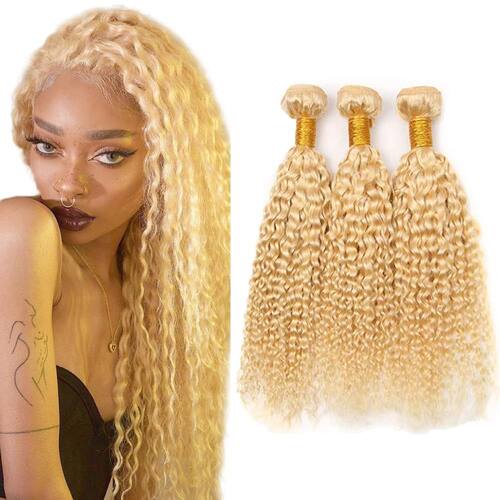 - 3,613 feixes de onda de água cor: cor loira, 613 mechas de cabelo humano ondulado de água.