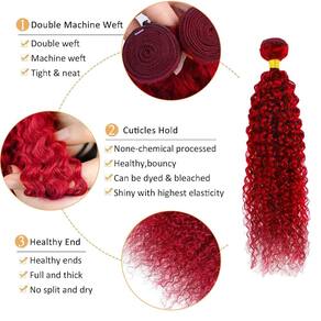 - 1. Cabelo humano encaracolado crespo vermelho: mechas de cabelo humano brasileiro não processado. Feixes de cabelo humano cacheados crespos.