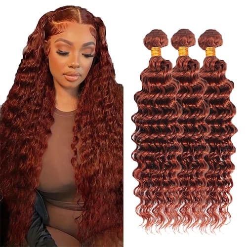 - ?Tipo e cor do pacote de cabelo? Cabelo humano ondulado profundo. Cor #33 Pacotes vermelho cobre, marrom avermelhado.