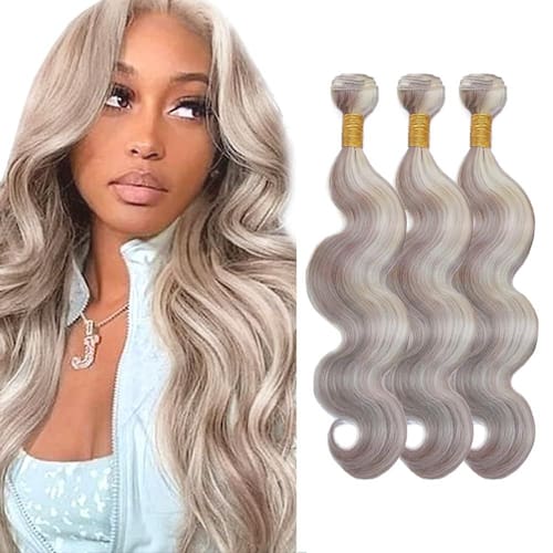 - ?Tipo e cor do pacote de cabelo?Pacote de cabelo humano ondulado. Cor cinza/613, cinza de dois tons misturado com loiro.