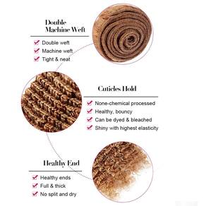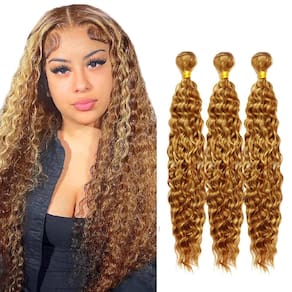 - ?Tipo e cor do pacote de cabelo? Cabelo humano ondulado profundo. Cor P27/30, dois tons marrom claro misturado com loiro.