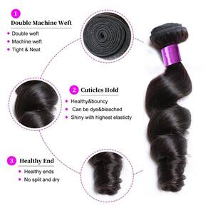 - Material do cabelo: mechas onduladas soltas, mechas de cabelo humano virgem 100% não processadas cortadas de meninas, podem ser tingidas, tingidas, enroladas, descoloridas ou estilizadas como seu próprio cabelo.