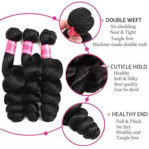 -?Feixes de cabelo humano, modo de uso e ocasião em ondas soltas?Você pode costurar feixes de cabelo, tecer feixes de cabelo rapidamente, fazer perucas ou fazer um rabo de cavalo. Adequado para todos os tipos de ocasiões, por exemplo, trabalho diário, viagens, casamentos, festas, formaturas, encontros e qualquer outra ocasião.