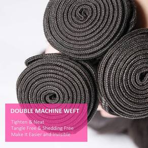 -?Pacotes de qualidade de cabelo humano?Trama dupla à máquina. Cabelo humano cru de alta qualidade. Cada fio de cabelo é cuidadosamente selecionado, tem densidade total, pontas grossas, macias e sedosas, é fácil de pentear, não tem cheiro e é saudável. Maior vida útil.