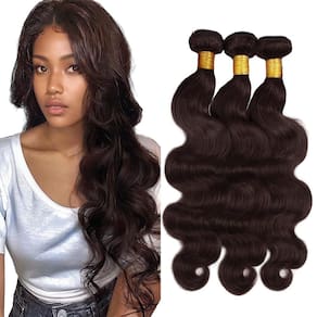 - Material dos feixes de cabelo humano: trama de cabelo humano virgem brasileiro, corte de doadores de meninas, onda corporal 3 feixes, marrom escuro chocolate.