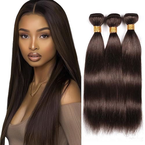 - Material do pacote de cabelo humano: trama de cabelo humano virgem brasileiro, corte de doadoras de meninas, Staright 3 pacotes, marrom escuro chocolate.