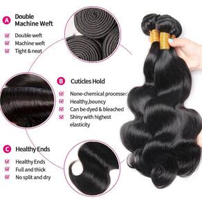 Material de feixes de cabelo humano: extensões de cabelo humano virgem brasileira 100% não processadas, cortadas diretamente de um jovem doador, sedosas, macias, limpas e saudáveis, sem mistura de pelos sintéticos ou pelos de animais. Sem cheiro, sem processamento químico. Pacotes de ondas corporais Peso e comprimento do cabelo humano: o feixe de ondas corporais é de 80 (+/- 5) g cada pacote, geralmente 3 feixes de cabelo humano. A onda corporal é suficiente para formar uma cabeça linda. Quando você mede, a maneira correta de medir é endireitar e medir o comprimento real. Características do cabelo humano dos pacotes: feixes de cabelo humano de cor natural, trama dupla resistente à máquina, trama superior requintada, justa e limpa, cheia e grossa, sem emaranhados e sem queda. Vantagens dos feixes de cabelo: podem ser descoloridos, esticados, utilizados com conforto, podem ser tingidos, permanentes, realçados, enrolados ou modelados adequadamente para o dia a dia, estilizados como você quiser, podem durar 1 ano com os cuidados adequados. Serviço brasileiro de pacotes de cabelo: ofertas de pacotes de cabelo humano adequados para festas, aniversários, casamentos, feriados, viagens e formaturas. Use diariamente ou envie como presente. - Material de feixes de cabelo humano: extensões de cabelo humano virgem brasileira 100% não processadas, cortadas diretamente de um jovem doador, sedosas, macias, limpas e saudáveis, sem mistura de cabelo sintético ou pêlos de animais. Sem cheiro, sem processamento químico. - Pacotes de ondas corporais Peso e comprimento do cabelo humano: o pacote de ondas corporais é de 80 (+/- 5) g cada pacote, geralmente 3 feixes de cabelo humano. A onda corporal é suficiente para formar uma cabeça linda. Quando você mede, a maneira correta de medir é endireitar e medir o comprimento real. - Características de cabelo humano: feixes de cabelo humano de cor natural, trama dupla robusta à máquina, trama superior requintada, justa e elegante, cheia e grossa, sem emaranhados e sem queda. - Vantagens dos feixes de cabelo: podem ser descoloridos, esticados, utilizados com conforto, podem ser tingidos, permanentes, realçados, enrolados ou estilizados adequadamente para o dia a dia, estilizados como você quiser, podem durar 1 ano com os cuidados adequados. - Serviço brasileiro de pacotes de cabelo: ofertas de pacotes de cabelo humano adequadas para festas, aniversários, casamentos, feriados, viagens e formaturas. Use diariamente ou envie como presente.