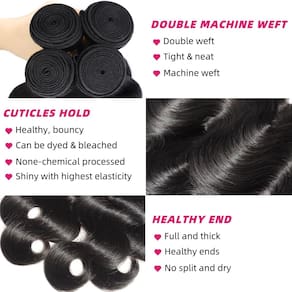 Feixes de cabelo humano 12A 66 66 71 cm cabelo humano 100% virgem brasileiro não processado, 4 mechas de extensões de cabelo humano ondulado preto natural real 1B pacotes para mulheres - Comprimento e peso do cabelo humano, feixes de trama de 25 a 86 cm, comprimento real, peso verdadeiro, cada pacote tem 95 g - 100 g, geralmente 3-4 feixes de cabelo humano são suficientes para fazer uma cabeça totalmente bonita. Para o comprimento, estique o cabelo virgem para ficar liso e depois meça-o - Material dos feixes de cabelo humano ondulado do corpo: 100% cabelo humano virgem cru não processado, feixes de cabelo humano 12A, cachos ondulados corporais de cabelo humano 4 mechas de cabelo humano, cortado diretamente de meninas jovens sem qualquer processo químico. Saltitante, saudável, limpo e macio e fica bonito por mais tempo. Oferecendo a você um visual completo e sedoso - Pacotes ondulados do corpo Cor do cabelo humano: Feixes de cabelo humano de cor preta natural, podem ser tingidos e descoloridos. Combina perfeitamente com o seu cabelo, fica mais realista e bonito. 3-4 mechas de cabelo humano, geralmente é suficiente para a cabeça inteira. Pode ser alisado, com permanente, destacado, enrolado ou estilizado como seu próprio cabelo - Características do cabelo humano dos feixes ondulados do corpo: trama de máquina dupla para mechas de cabelo. Trama justa e limpa com alta elasticidade, saltitante e brilhante, ponta grossa e saudável. Cutícula unidirecional sem pontas divididas, pouco queda, sem emaranhados, sem tratamento químico, sem cheiro, sem piolhos - Feixes de cabelo humano virgem brasileiro amplas ocasiões: você pode usar os mechas de cabelo humano em qualquer ocasião, por exemplo, festa/Halloween/festival/show de palco/Natal/escola/férias. Uso diário ou como presente