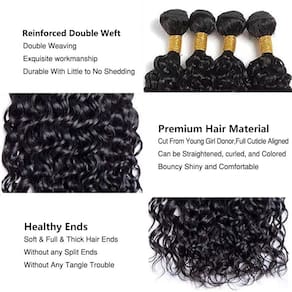 -?Qualidade dos feixes de cabelo humano?: 4 feixes de cabelo humano ondulado de água de grau 12A, trama dupla, sem emaranhamento, sem queda, alta elasticidade e elasticidade.