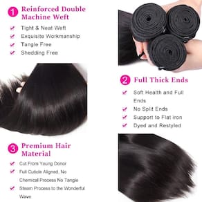 - Textura do cabelo: 12A mechas lisas de cabelo humano, macio e liso, sem emaranhados, queda mínima, sem cheiro, você pode tingir ou usar alvejante, passar a ferro ou enrolar em qualquer estilo que desejar