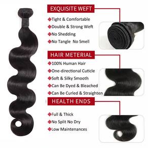 Cor dos feixes de cabelo: Cor preta natural ondulada corporal 3 feixes, que podem ser tingidos e descoloridos para outras cores que você gosta.