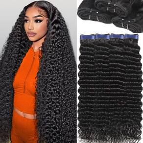 - Características dos pacotes de cabelo humano Deep Wave: pacotes Deep Wave 4, cor preta natural, feixes de cabelo humano Remy de 12-30 polegadas, de comprimento fiel. Cada pacote encaracolado tem cerca de 100g, geralmente 3-4 feixes de cabelo humano cru são suficientes para formar uma cabeça linda e cheia.