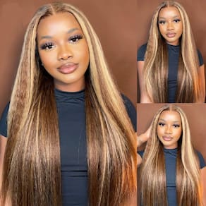4. Cor do cabelo: Cor P4/613. Marrom escuro misturado com cabelo loiro.