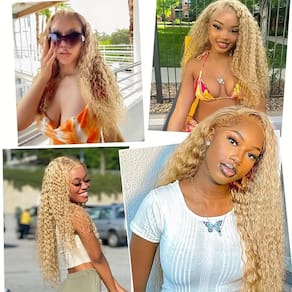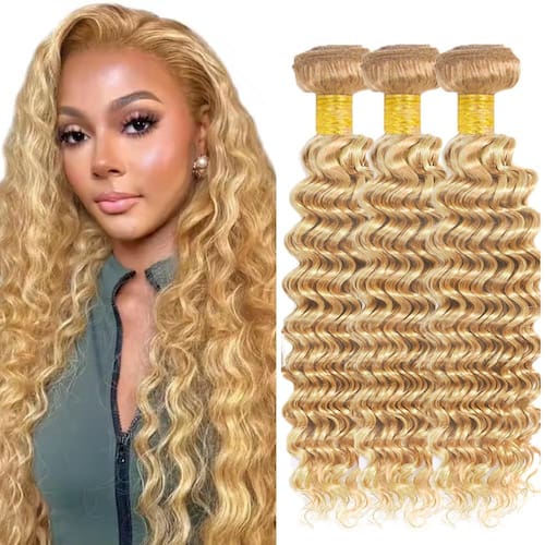 - ?Material de mechas loiras?: Feixes de cabelo humano cacheado virgem brasileiro não processado. Macio e elástico.