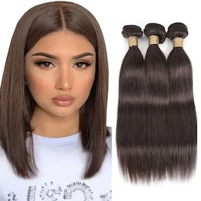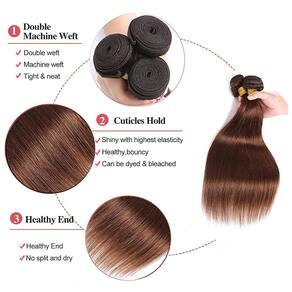 WuvuSnm Feixes de cabelo humano ~ proporcionam uma melhor experiência! 1. Material: Cabelo humano virgem brasileiro não processado. 2. Tipo de extensão de cabelo: extensões de cabelo humano ondulado liso. 3. Textura: Pacotes retos. 4. Tipo de cabelo humano: Cabelo humano Remy brasileiro. 5. Trama do cabelo: Trama usinada dupla, sem emaranhamento, sem queda. 6. Cor do cabelo: os feixes são de cor marrom escuro, cor nº 4. 7. Comprimento do cabelo: mechas de cabelo de 20 a 86 cm, feixes retos de comprimento fiel. 8. Peso do cabelo: cabelo liso 3 feixes, 100 g/pacote, 300 g no total no pacote. FQA: P1: Como evitar emaranhamento ou queda de cabelo? A1: suas extensões de cabelo podem ficar emaranhadas devido à secura, acúmulo de gordura e sujeira. Lave o cabelo com um bom xampu e condicionador e penteie suavemente o cabelo com os dedos. Certifique-se de limpar e aparar pelo menos uma vez por semana. P2: Quantos mechas eu preciso para uma cabeça inteira? R2: Normalmente 3 mechas são suficientes para uma cabeça inteira. - ?Material marrom escuro?: Feixes de cabelo humano liso virgem brasileiro não processado. Macio e elástico. - ?Vantagem dos pacotes marrom?: Trama de máquina dupla, firme e limpa, sem queda, sem emaranhados, sem cheiros, fácil de pentear e modelar. - ?Detalhes dos pacotes retos marrom?: marrom escuro, cor nº 4, 95-105 g/feixes, 20.3 cm-86.4 cm, peso total e fiel ao comprimento. - ?Escolha perfeita?: Bonito e moderno, conforto e durabilidade de longa duração, adequado para qualquer ocasião, perfeito para sua coleção de itens essenciais do dia a dia. - ?Nosso serviço?: A Amazon Logistics oferece a você uma melhor diversão. Se você tiver alguma dúvida, estaremos à sua disposição a qualquer momento