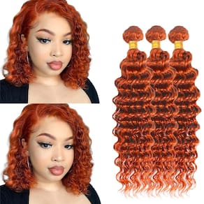 - ?Material dos feixes de gengibre?: Feixes de cabelo humano virgem brasileiro ondulado profundo não processado. Macio e elástico.