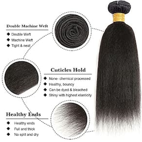 WuvuSnm Feixes de cabelo humano ~ proporcionam uma melhor experiência! 1. Material: Cabelo humano virgem brasileiro não processado. 2. Tipo de extensão de cabelo: Extensões de cabelo humano liso crespo. 3. Textura: Pacotes retos crespos. 4. Tipo de cabelo humano: Cabelo humano Remy brasileiro. 5. Trama do cabelo: Trama usinada dupla, sem emaranhamento, sem queda. 6. Cor do cabelo: os feixes são de cor preta natural 7. Comprimento do cabelo: Feixes de cabelo de 20 a 86 cm, mechas de cabelo humano liso yaki fiel ao comprimento. 8. Peso do cabelo: cabelo liso Yaki 3 feixes, 100 g/pacote, 300 g no total no pacote. FQA: P1: Como evitar emaranhamento ou queda de cabelo? A1: suas extensões de cabelo podem ficar emaranhadas devido à secura, acúmulo de gordura e sujeira. Lave o cabelo com um bom xampu e condicionador e penteie suavemente o cabelo com os dedos. Certifique-se de limpar e aparar pelo menos uma vez por semana. P2: Quantos mechas eu preciso para uma cabeça inteira? R2: Normalmente 3 mechas são suficientes para uma cabeça inteira. - ?Material dos feixes de cabelo humano?: Feixes de cabelo humano liso virgem brasileiro não processado. Macio e elástico. - ?Vantagem dos pacotes?: Trama de máquina dupla, firme e limpa, sem queda, sem emaranhados, sem cheiros, fácil de pentear e modelar. - ?Detalhes de feixes retos excêntricos?: Preto natural #1B, 95-105 g/feixes, 20.3 cm-86.4 cm, peso total e fiel ao comprimento. - ?Escolha perfeita?: Bonito e moderno, conforto e durabilidade de longa duração, adequado para qualquer ocasião, perfeito para sua coleção de itens essenciais do dia a dia. - ?Nosso serviço?: A Amazon Logistics oferece a você um melhor prazer. Se você tiver alguma dúvida, estaremos à sua disposição a qualquer momento