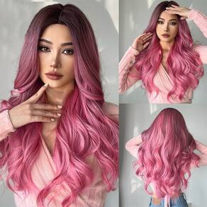 1B/mechas de cabelo ondulado rosa do corpo: