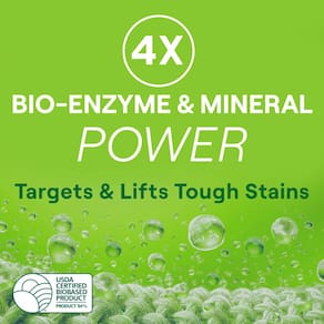 - Usa o poder efetivo de 4x bio-enzimas, além de minerais, para combater sujeira, manchas e odores resistentes