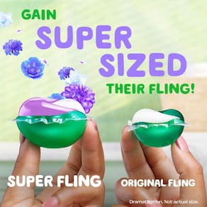 - 1 pacote de detergente de roupa Super Fling = 2 Flings autênticos! * * com base no desempenho de limpeza vs. 2 Gain autêntico Flings!