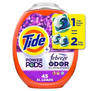 Tide Potes de detergente para roupas Power Pods com frescor Febreze com eliminadores de odores, aroma de primavera e renovação, 45 unidades