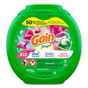 Gain Flings! Sabonete detergente para roupas compatível com HE 60 ct perfume de longa duração Spring Daydream
