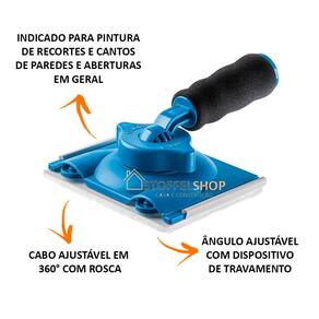 1 PAD COM CABO PARA RECORTE E ACABAMENTO EM PINTURASREF: AT750/80MARCA: ATLAS•DESCRIÇÃO DO PRODUTO:-PAD flocado com cabo ajustável em 360° com rosca.-O PAD com cabo para recortes e acabamento em pinturas da Atlas é uma excelente ferramenta paraarremates em recortes, aberturas, rodapés e marcos de portas e janelas. -Possui um cabo que rotaciona 360 graus e permite uma maior liberdade de movimentos, facilitando a pintura dos arremates. -A lã sintética proporciona um ótimo acabamento e os rodízios um alinhamento perfeito da pintura.-O PAD com cabo é indicado para todos os tipos de tintas quando aplicadas em superfícies lisas.•INDICAÇÃO DE USO:Indicado para pintura de recortes e cantos de paredes e aberturas em geral. Ideal para aplicação com tinta acrílica, esmalte e pva em superfície lisa.•DIMENSÕES:-Comprimento: 17cm-Largura: 12cm-Altura: 7cm•COMO USAR:-Utilize uma bandeja para carregar uniformemente o PAD com o produto desejado. Retire o excessode tinta no PAD utilizando a bandeja.-Aplique a tinta encostando os rodízios na parede, rodapé ou marco que será o guia para o recorteperfeito na sua pintura.-Após a pintura, retire o PAD da base para limpá-lo ou descarte-o, substituindo-o por outro PADrefil.(AT750/35)-Para pintura em áreas de difícil acesso, o cabo do PAD pode ser utilizado em conjunto com umprolongador.•ANTES E DEPOIS DE USAR:-Com produtos base água: lavar e enxaguar com água.---------------------------------------------------------------------------------------------------------------------2 REFIS PAD PARA RECORTE E ACABAMENTO EM PINTURASREF: AT750/35•DESCRIÇÃO DO PRODUTO:-2 refis de pad 4'' flocado cada pacote.-Para pads com ou sem cabo Atlas.•INDICAÇÃO DE USO:-Indicado para pintura de recortes e cantos de paredes e aberturas em geral. -Ideal para aplicação com tinta acrílica, esmalte e pva em superfície lisa.-Com produtos base solvente: lavar e enxaguar com solvente. PAD PARA RECORTE EM CANTOSREF: AT750/60-DESCRIÇÃO DO PRODUTO:-O PAD Cantos para acabamentos em pintura da Atlas é uma excelente ferramenta para arremates.-O formato da ferramenta no ângulo 90 proporciona uma pintura uniforme e de fácil execução em cantos.-INDICAÇÃO DE USO:Indicado para pintura de recortes em cantos de paredes. Ideal para aplicação com tinta acrílica, esmalte e pva em superfície lisa.-COMO USAR:-Utilize uma bandeja para carregar uniformemente o PAD com o produto desejado. Retire o excesso de tinta no PAD utilizando a bandeja.-Aplique a tinta encostando nos cantos da parede, para o recorte perfeito na sua pintura.-Após a pintura, retire o PAD do suporte para limpá-lo ou descarte-o substituindo-o por outro PAD.