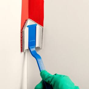 PAD flocado com cabo para pintura. Indicado para pintura de recortes em cantos de paredes. Ideal para aplicação com tinta acrílica, esmalte e pva em superfície lisa.