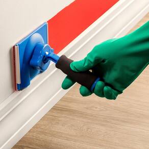 PAD flocado com cabo ajustável em 360° com rosca. Indicado para pintura de recortes e cantos de paredes e aberturas em geral. Ideal para aplicação com tinta acrílica, esmalte e pva em superfície lisa.