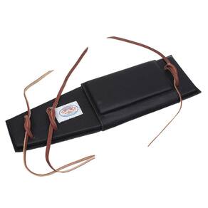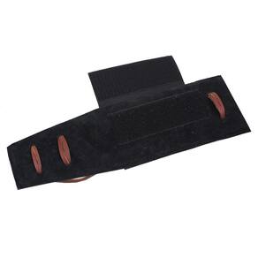 Pad na qualidade Freedom para corda americana (Baixeiro), fabricado em borracha, revestido em couro cor Preto com fechamento em tira autocolante e tentos de couro, detalhe da parte inferior em couro camurça. Acessório para ser fixado à corda de montaria. Sua função é aumentar a área de contato entre a corda e o animal, além de proteger sua mão de solavancos.