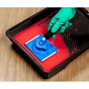 PAD flocado com cabo ajustável em 360° com rosca. Indicado para pintura de recortes e cantos de paredes e aberturas em geral. Ideal para aplicação com tinta acrílica, esmalte e pva em superfície lisa.