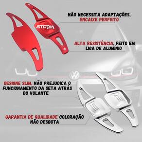 quem somos somos a storm parts, loja especializada em peças automotivas, trabalhamos com peças importadas e nacionais, com garantia de qualidade e durabilidade, nossa equipe está pronta para lhe oferecer o melhor atendimento e ajudar a encontrar a peça certa para o seu veículo, aqui você encontra tudo o que precisa para cuidar do seu veículo. O produto: o padlle shift é ideal para quem quer dar um toque esportivo e agressivo no seu carro, por ser totalmente plug and play sem adaptações a peça traz um visual de originalidade e requinte, tenha seu carro diferenciado e com ar esportivo com nosso paddle shift. Instalação fácil, sem necessidade desmontar o volante, encaixe perfeito sobre a peça colado com fita dupla face de alta resistência