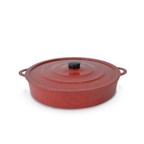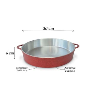 Paejeira Paellera Fundida Alumínio Batido Grosso Com Tampa 30cm Vermelho