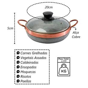 Paella Pedra Sabão Alça de Cobre com Tampa de Vidro P 20x5cm